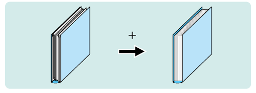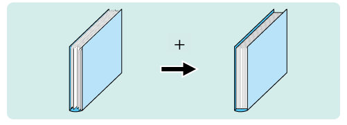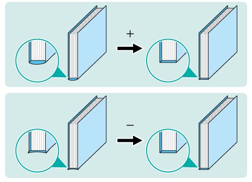Taquage papier sens latéral couverture haut/bas | En cas de défaut d'alignement détecté entre le corps du livre et le papier couverture, corrigez-le dans le sens transversal. |
