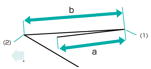 Lorsque vous réglez le premier et le second pli, commencez toujours par le réglage du premier pli. La position du premier pli est calculée à partir du bord du papier, tandis que celle du second pli est calculée à partir de la position du premier pli. En conséquence, la mesure (b) de l'étape 1 peut changer pour l'une ou l'autre position de pliage.
