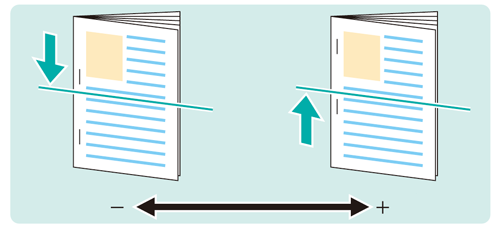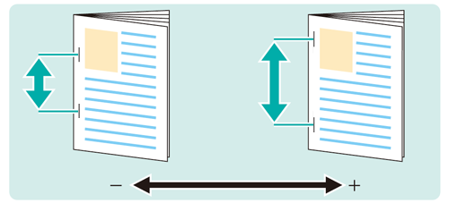 Sur l'écran tactile de la machine, vous pouvez régler la position de pliage, l'espacement et la position des agrafes ainsi que la position de pliage en deux du papier d'un livret.