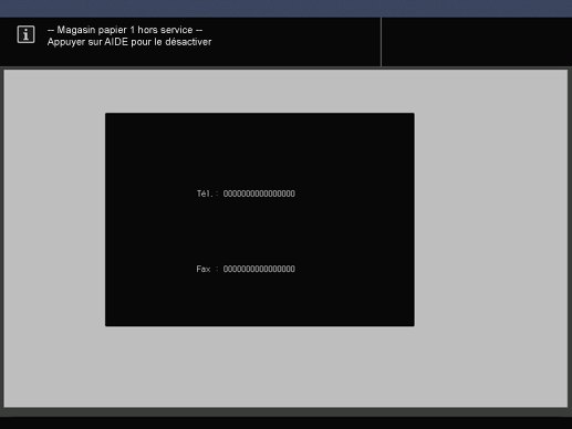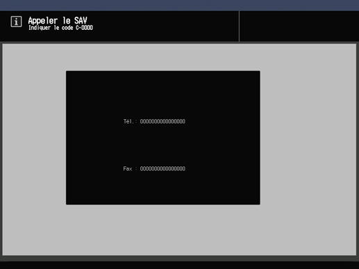 L'écran Veuillez appeler le SAV affiche généralement les numéros de téléphone et de fax du technicien SAV.