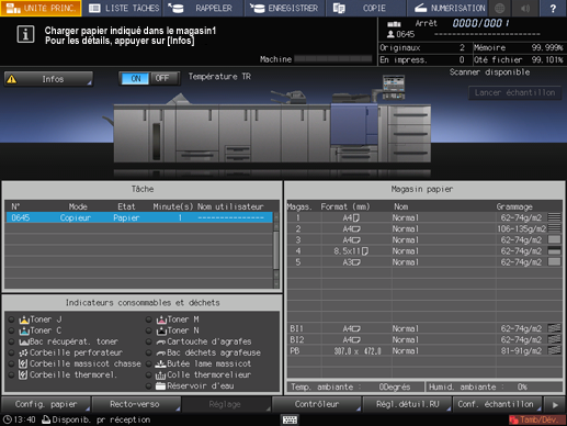 L'écran [MACHINE] revient et affiche le message [Appuyer sur [Depart] pour reprendre].