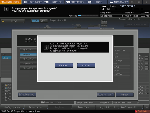 Un dialogue s'affiche pour confirmer les modifications de réglage du magasin.