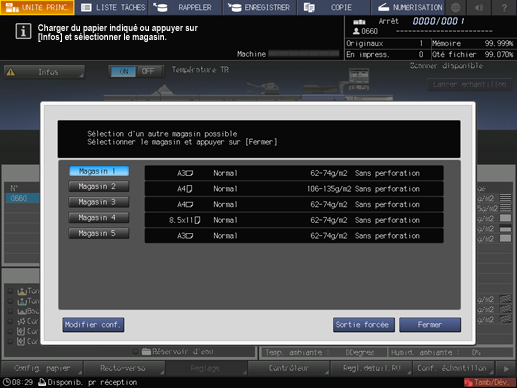 Le magasin sélectionné pour la sortie forcée sera utilisé tant que la tâche concernée n'est pas terminée.