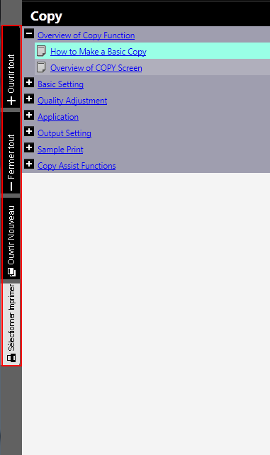Cliquez sur [+] dans la table des matières pour ouvrir le répertoire et cliquez sur [-] pour le réduire.