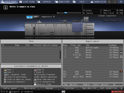 L'écran [MACHINE] affiche la quantité de papier restant dans chaque magasin.