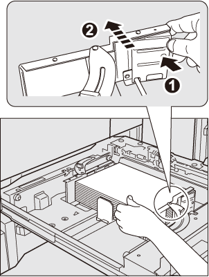Déterminez la position en vous aidant des indications de format figurant sur le plateau inférieur du magasin.