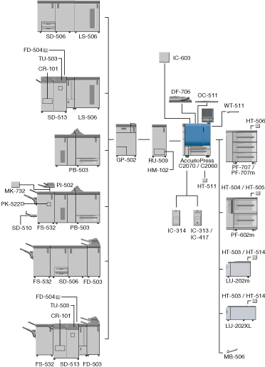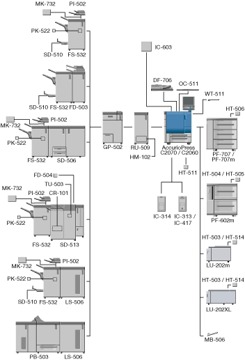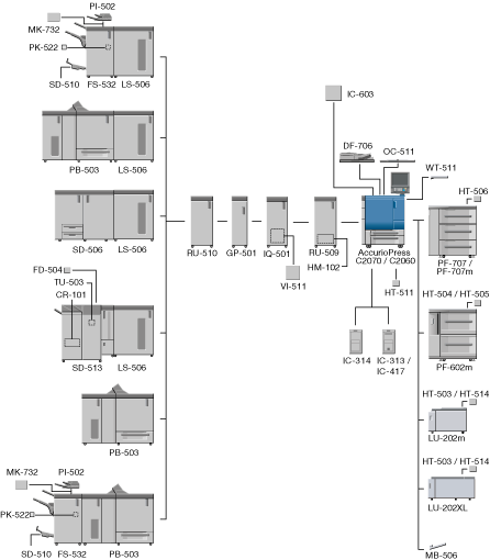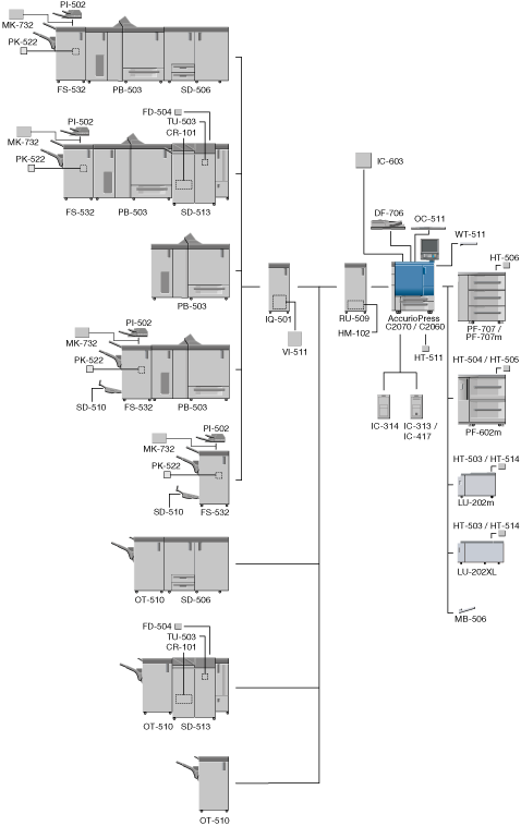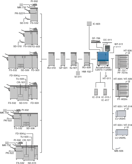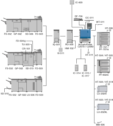 Dans certains cas, l'optimiseur Color Care intégré IQ-501 n'est pas monté dans la configuration de l'option. L'optimiseur Color Care intégré IQ-501 ne peut pas être connecté à AccurioPress C2060.