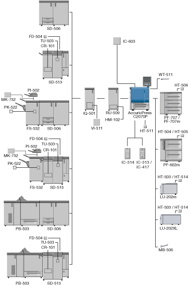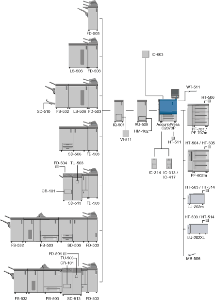 Dans certains cas, l'optimiseur Color Care intégré IQ-501 n'est pas monté dans la configuration de l'option.