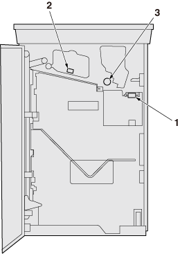 1 | Porte avant de l'unité de finition | Ouvrez cette porte pour dégager les bourrages papier. |