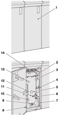 9 | Levier [GP5] | A ouvrir vers le bas pour l'enlèvement des bourrages papier. |
