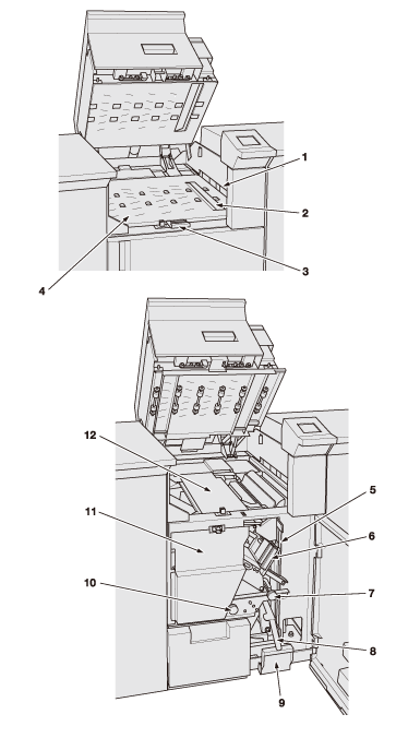 Reçoit les livrets reliés. Retirer le magasin pour sortir les livrets produits.
