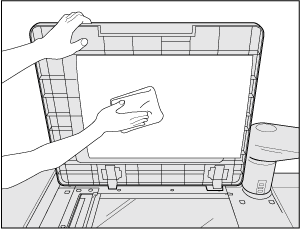 L'intérieur du couvre-original doit rester propre, sinon les salissures peuvent être reproduites sur les copies. Nettoyez l'intérieur du couvre-original avec un chiffon doux propre.