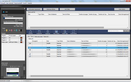 Vous pouvez imprimer une tâche en attente à l'aide de Job Centro.