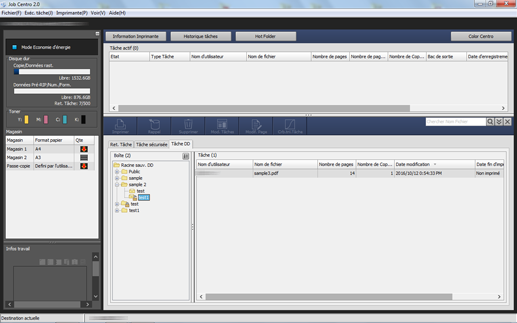 Vous pouvez imprimer une tâche enregistrée sur disque dur à l'aide de Job Centro.