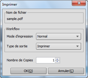 Sélectionnez [Impression] sur l'écran [Imprimer], entrez le [Nombre de copies] et cliquez sur [OK].