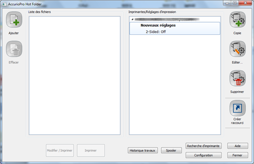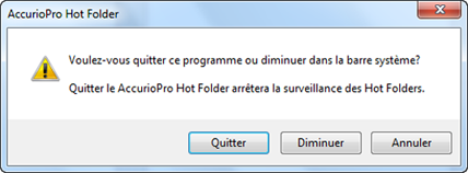 [Quitter] : AccurioPro Hot Folder se termine. La fonction Hot Folder n'est pas disponible.