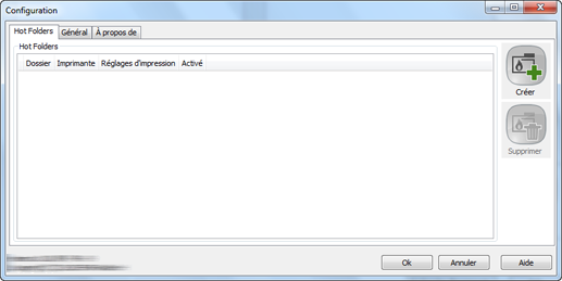 Si des dossiers actifs sont configurés, ils sont affichés dans [Hot Folders].
