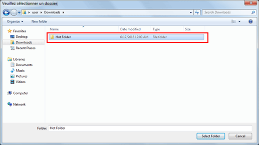 Le dossier sélectionné est enregistré dans [Hot Folders].
