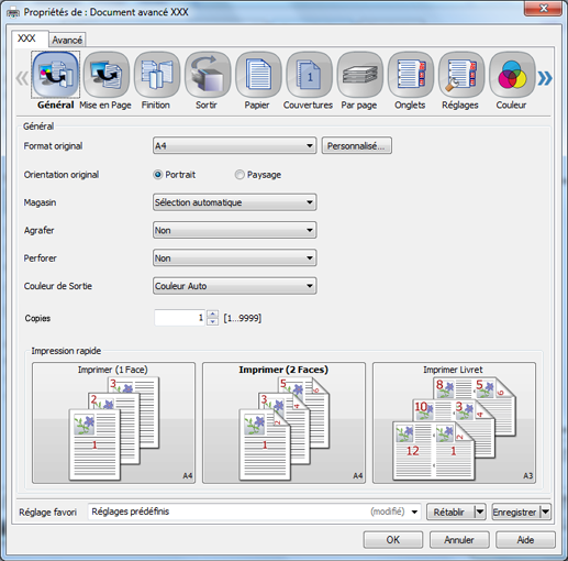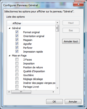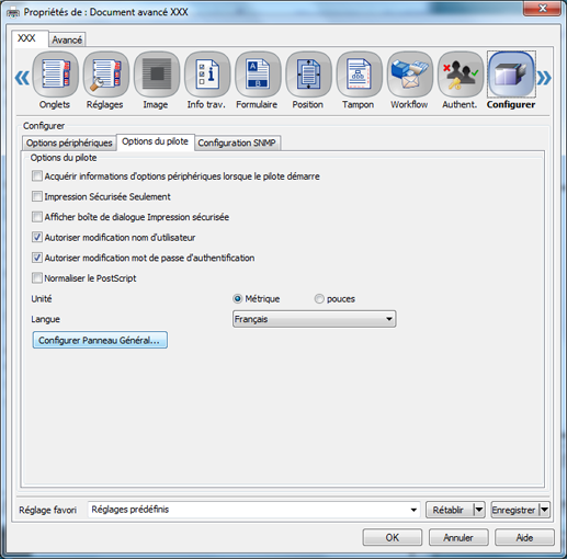 Cliquez sur l'onglet [Configurer] et sur [Options du pilote] - [Configurer panneau général].