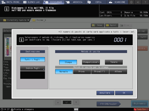 Premere [OK] nella finestra di dialogo di selezione del richiamo/metodo di uscita.