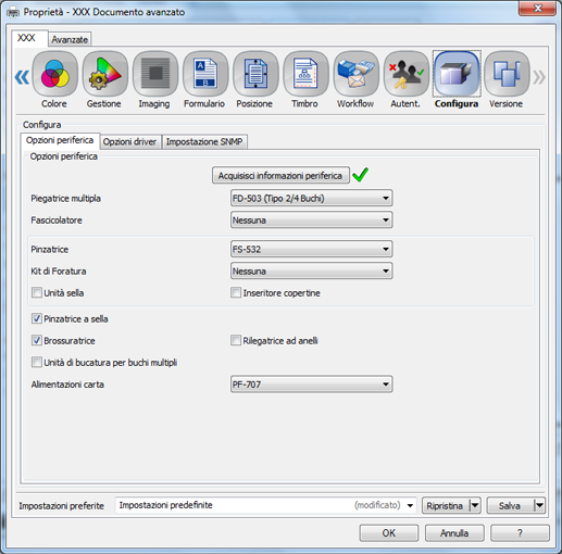Verificare che sia visualizzato sulla destra di [Acquisisci informazioni periferica]. Se non è visualizzato, fare clic su [Acquisisci informazioni periferica] per acquisire le informazioni sulle opzioni della periferica.