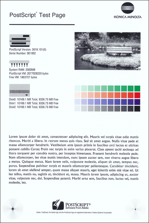 È possibile stampare nella vista elenco le informazioni delle specifiche del motore PostScript integrato nella macchina.