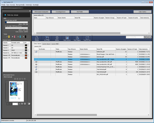 È possibile stampare un lavoro conservato. È anche possibile trascinare il lavoro selezionato nell'elenco lavori attivi per eseguire le stampe.