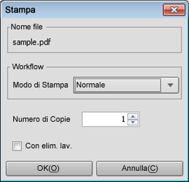 Quando si deve stampare un lavoro attivo da conservare, la casella di controllo [Con elim. lav.] non è visualizzata.