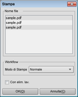 Per eliminare il lavoro dall'elenco Cons. lavoro dopo l'esecuzione della stampa, selezionare [Con elim. lav.].
