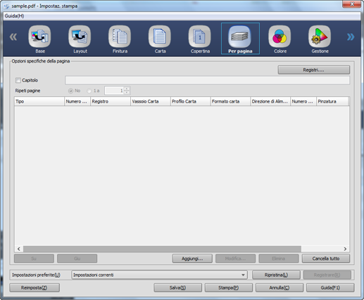 È possibile specificare le impostazioni pagine dell'impostazione di stampa.