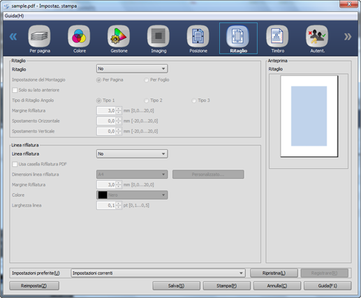 È possibile specificare il ritaglio dell'impostazione di stampa.