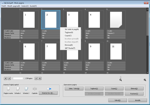 È anche possibile operare selezionando la pagina di destinazione di copia e facendo clic su [Operazione pagina] - [Incollare prima] o [Incollare dopo].
