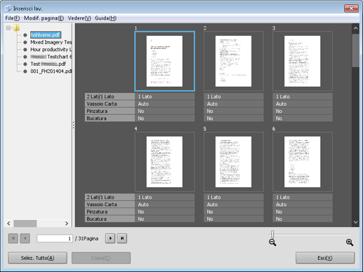 [Operazione pagina] | [Selez. tutto] | Consente di selezionare tutte le pagine. |