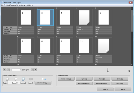La carta copertina o la pagina bianca inserita automaticamente non sono destinazione di spostamento, copia o eliminazione.