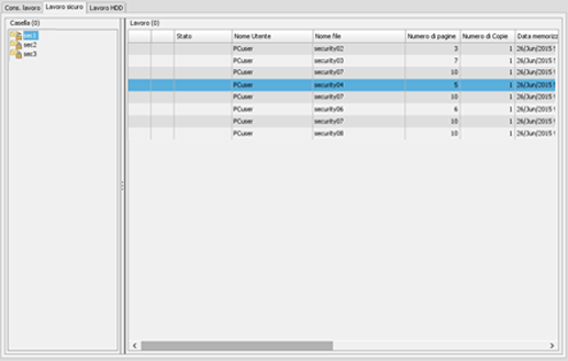 L'elenco Lavoro sicuro visualizza i lavori sicuri nel Box protetto selezionato.