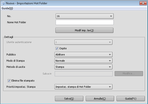 Se si chiude la schermata senza premere Salva sulla schermata [Impostazioni Hot Folder] dopo aver premuto Salva nella schermata [Configurazione impostazione lavoro], l'impostazione non viene salvata.