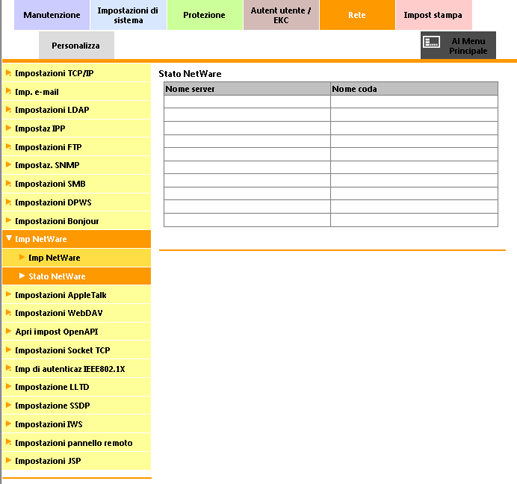 Fare clic su [Imp NetWare] - [Stato NetWare] nella schermata [Rete] per visualizzare questa schermata.