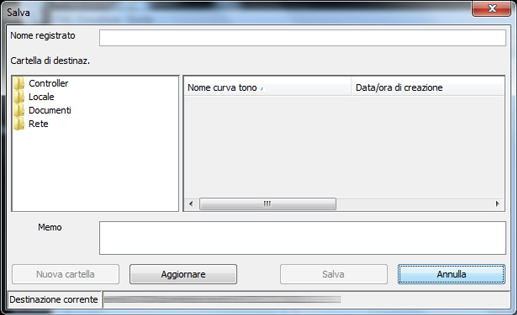 Quando si seleziona [Locale], [Documenti] o [Rete] come cartella di destinazione, la curva di tonalità è salvata come il profilo curva di tonalità (estensione: .xml).