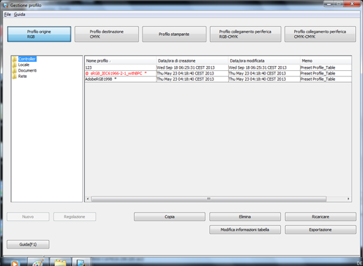 La funzione di gestione profilo di Color Centro utilizza la schermata [Gestione profilo].