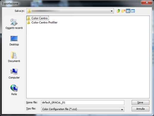 È possibile esportare un profilo origine RGB del controller immagine su [Locale], [Documenti], o [Rete].
