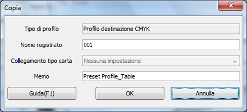 Non è possibile salvare il Profilo Destinazione CMYK con lo stesso nome di quello del controller immagine.