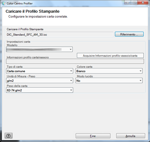 Fare clic su [Riferimento], selezionare un profilo stampante e fare clic su [Fine].