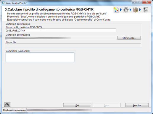 Nel Commento, inserire un commento da integrare nel profilo creato, come necessario. È possibile confermare il commento quando si seleziona il profilo in Color Centro Profiler.