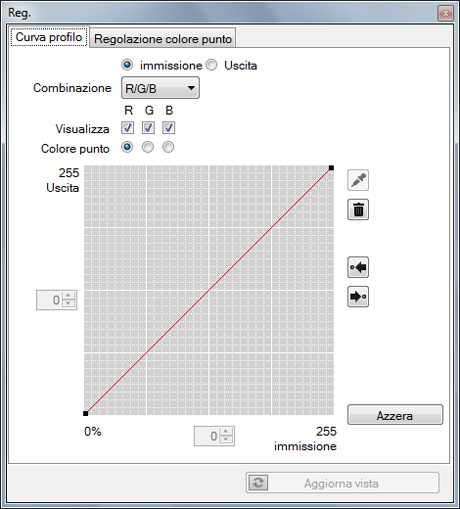Nella scheda [Curva profilo] della schermata [Reg.], selezionare [immissione] o [Uscita].