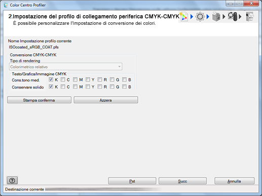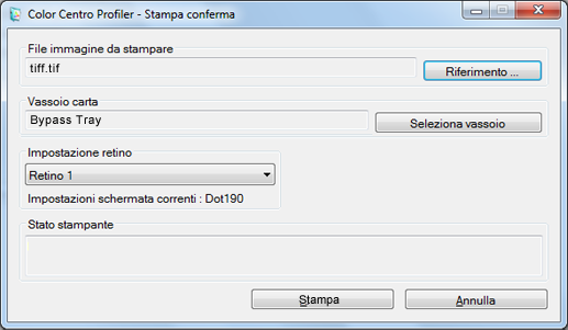 Quando si fa clic su [Annulla], la schermata [Stampa conferma] viene chiusa per tornare alla schermata Personalizza conversioni colore.