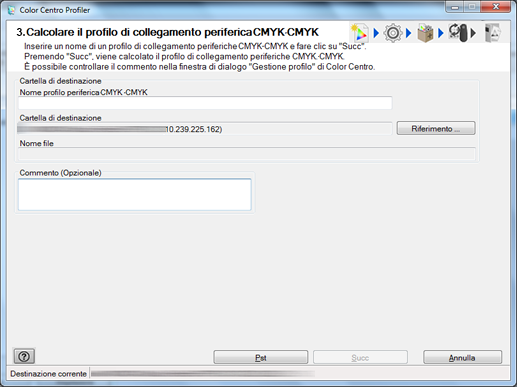 Nel Commento, inserire un commento da integrare nel profilo creato, come necessario. È possibile confermare il commento quando si seleziona il profilo in Color Centro Profiler.