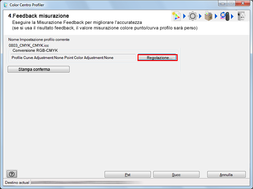 Nella schermata [Feedback misurazione], è possibile eseguire l'operazione per migliorare l'accuratezza della conversione CMYK-CMYK.