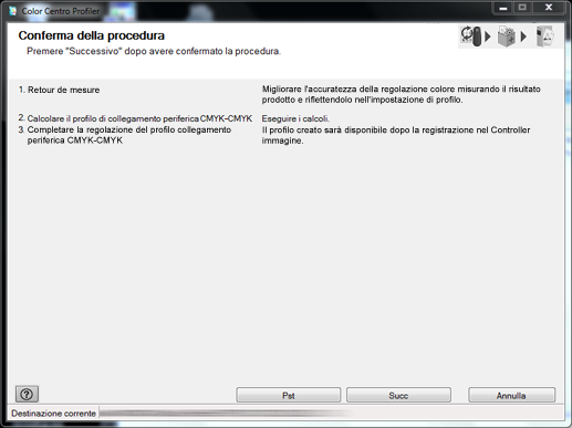 Il contenuto della schermata [Conferma della procedura] differisce a seconda della selezione dell'attività. Questa sezione descrive l'esempio in cui si seleziona [Eseguire il Feedback di misurazione].