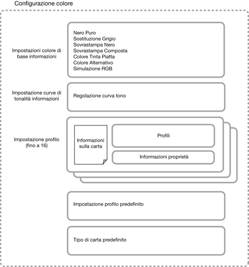 - una raccolta di diverse impostazioni profilo che corrisponde a tutti i tipi di carta usati per l'emissione di un lavoro