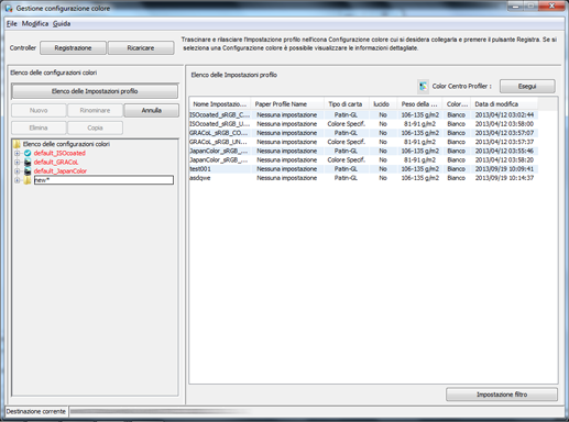Nell'elenco delle impostazioni profilo, trascinare e rilasciare l'impostazione profilo da usare per l'icona Configurazione colore.